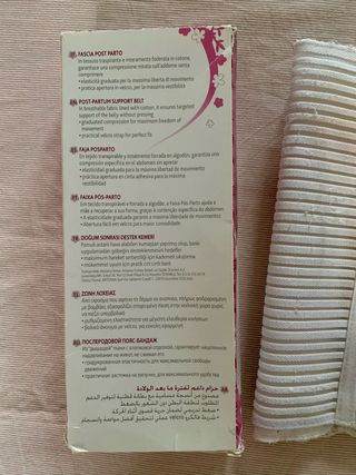 Faja de sujeción postparto, ideal para el periodo de recuperación. Comprada en farmacia. - Tejido elástico y transpirable. - Cierre ajustable.