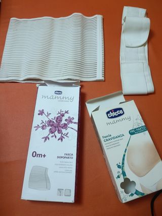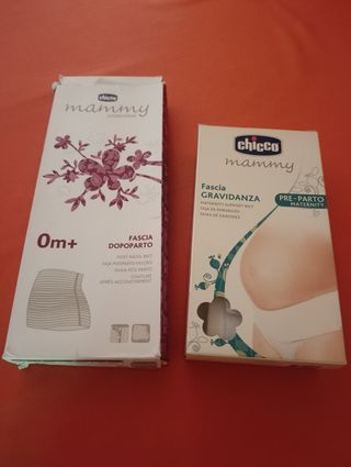 Vendo dos fajas elásticas de la marca Chicco, talla S. Ideales para antes y después del parto. - Fabricadas en material blanco. - Una es para el periodo pre-parto y la otra para el postparto.