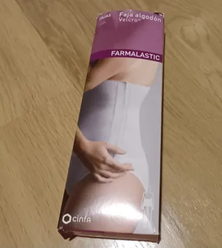 Faja de la marca Farmalastic, ideal para postparto. - Fabricada con algodón y cierre de velcro. - Diseño transpirable.