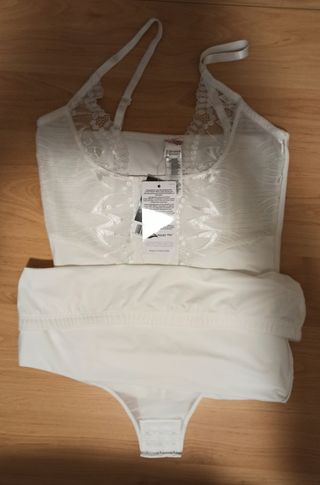 Preciosa faja moldeadora de la marca MarieE, en color beige. Es una prenda delicada y suave al tacto. Nueva con su etiqueta y su precio en 55 euros. - Talla: L,pero también para talla M - Cierre: con ganchos - Material: Poligamia y Elastan.