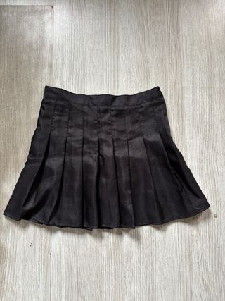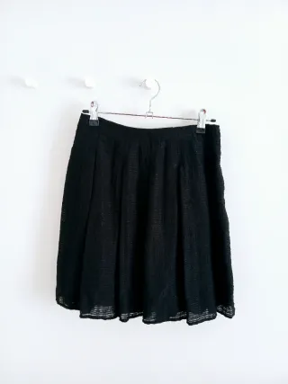 Falda corta de color negro. - Diseño con vuelo. - Cintura alta.