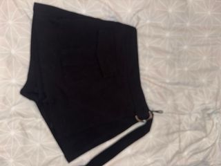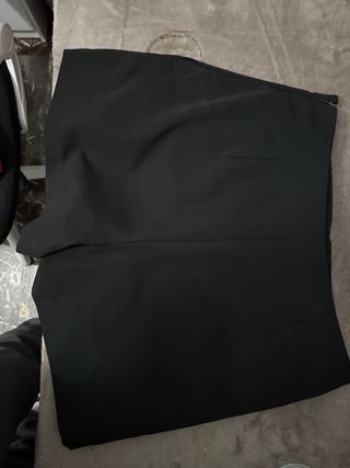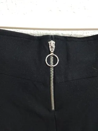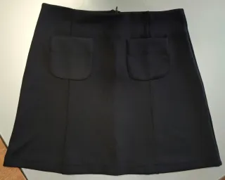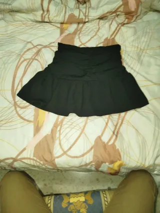 Falda corta de tela negra con un diseño moderno y práctico. Elastica da un poco mas de talla. - Dos bolsillos frontales. - Corte recto. - Cintura alta.