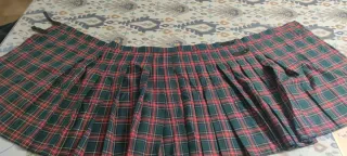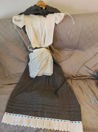 Conjunto de espigadora que incluye camisa, falda y pañuelo. - Camisa blanca con detalles de encaje. - Falda larga de tela a cuadros. - Pañuelo a juego. - Faldiquera Usado una vez