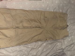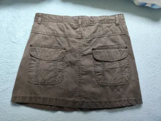Minifalda en color beige. Presenta un diseño moderno y práctico. - Bolsillos laterales con solapa y anilla. - Cierre de botón y cremallera.