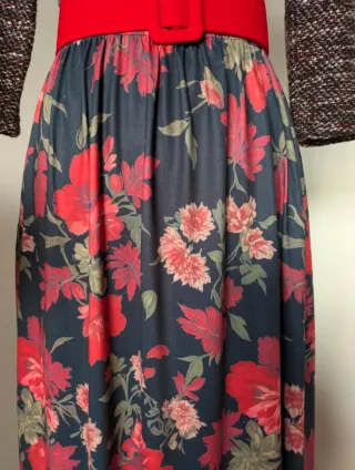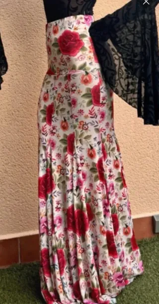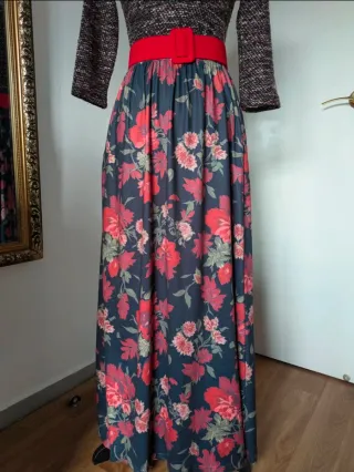 Elegante falda larga con un estampado floral delicado. Su diseño fluido la hace ideal para ocasiones especiales. - Corte largo y vaporoso.