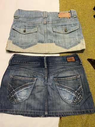 Falda vaquera de la marca Benneton. - Diseño de corte A. - Cintura con cordón. - Bolsillos delanteros.