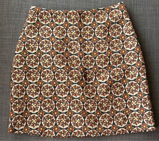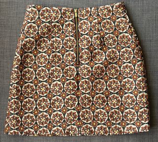 Falda con un diseño arrugado y estampado único, comprada hace poco - Diseño arrugado texturizado. - Estampado abstracto en tonos marrones y blancos.