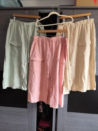 Falda larga de color rosa, ideal para cualquier ocasión. Es una prenda cómoda y versátil.Talla L - Cintura elástica con cordón ajustable. - Tejido ligero y fluido.