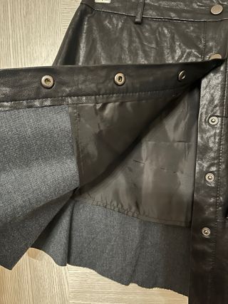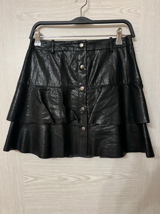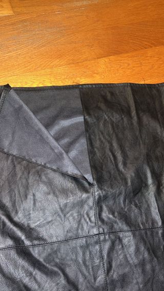 Falda corta con efecto piel. - Diseño cruzado. - Cremallera lateral. - Con etiqueta.
