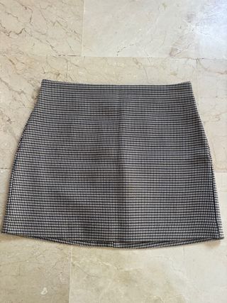 Falda de estilo pata de gallo con cremallera frontal. - Diseño de cuadros. - Cremallera plateada con tirador. - Corte ajustado.