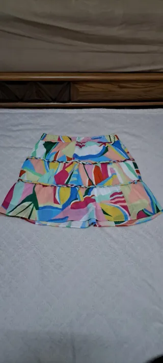 Falda con un alegre y vibrante estampado. - Diseño de volantes. - Cintura elástica. - Tejido ligero.