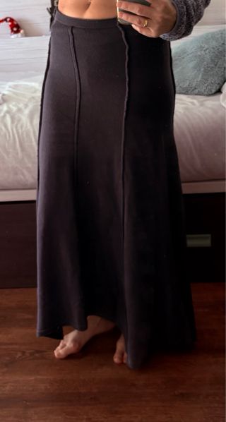 Falda larga de punto con un diseño moderno y costuras visibles. - Largo hasta los tobillos. - Tejido de punto suave y cómodo. - Diseño con costuras verticales.