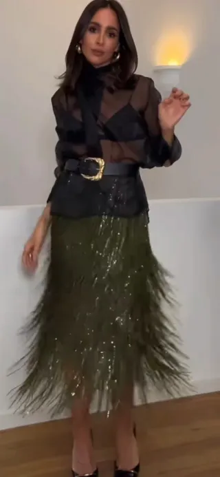 Falda de lentejuelas con flecos de Zara. - Diseño con flecos largos. - Acabado brillante de lentejuelas.