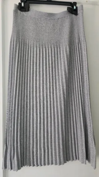 Falda plisada de punto en color gris. Presenta un diseño moderno y elegante. - Cintura elástica. - Tejido con textura. - Largo midi.