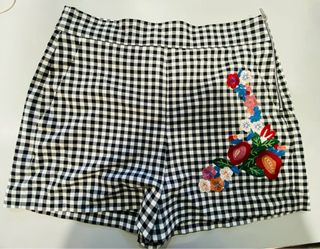 Falda pantalón de Zara Woman con un diseño de cuadros. - Estampado de cuadros blanco y negro. - Floreado bordado