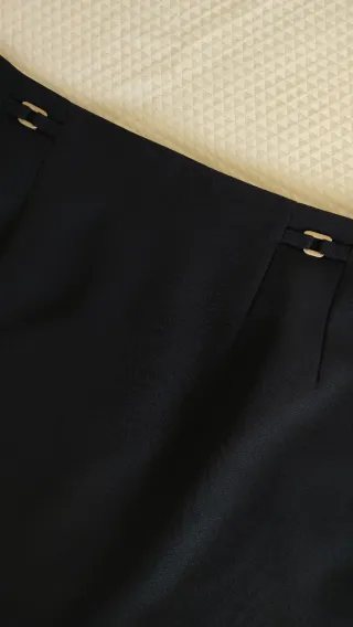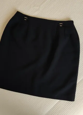 Falda de vestir en color negro. Diseño clásico y elegante. - Cintura alta. - Bolsillos delanteros. - Tejido de calidad. - Talla 38. - Tengo otra igual sin estrenar de la Talla 40 - Sin Estrenar,con etiqueta. - Hago envíos. - Más cositas en mi perfil.