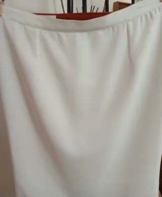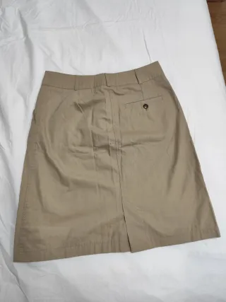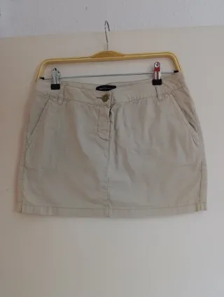 Falda de corte recto en color beige. - Cintura con trabillas. - Cierre de botón y cremallera. - Bolsillos laterales. - Talla 40 - Hago envíos. - Más cositas en mi perfil.