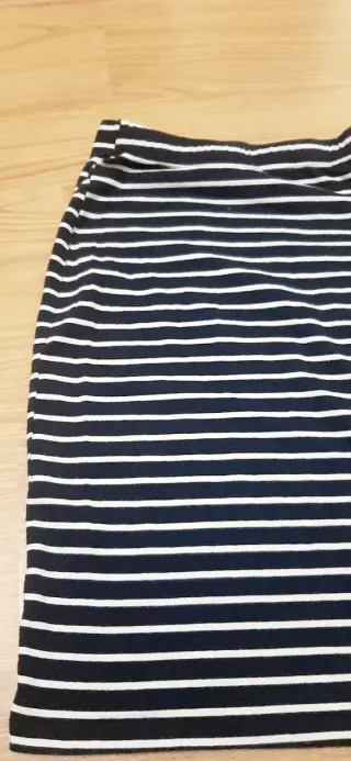 Falda de rayas en blanco y azul marino. Es una prenda versátil y cómoda. - Diseño de rayas horizontales. - Tejido elástico.