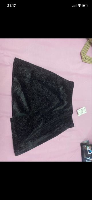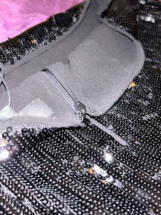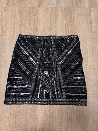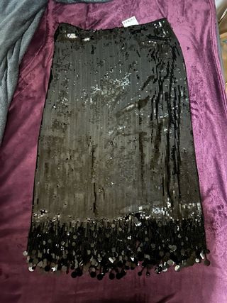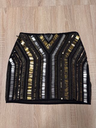 Falda negra con lentejuelas doradas y plateadas
