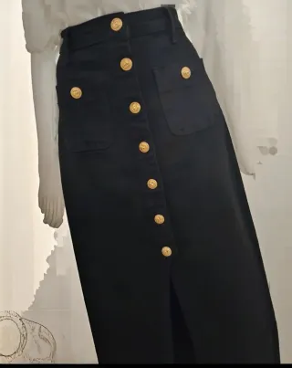 Falda larga negra con botones