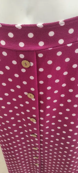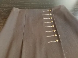 Falda elegante de color negro con un diseño moderno. Talla L - Detalle de botones decorativos en un lateral. - Tejido con estampado floral sutil. - Corte asimétrico en la parte inferior. Precio 2 euros