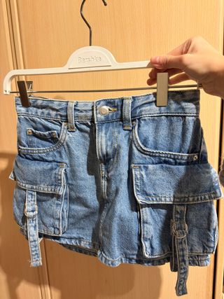 Falda corta vaquera de Zara. - Talla S - Diseño de tiro alto. - Cierre de botones. - Lavado desgastado.