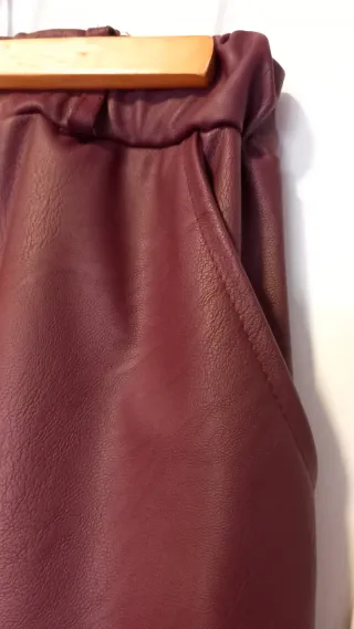 💰SOLO CON PAGO POR WALLAPOP. ▶️ELEGIR ENVÍO POR INPOST. NO ENVÍO POR CORREOS. Elige varios artículos de mi perfil, y paga sólo un envío No se reserva sin compra ➡️ También entrego en mano. 📍Falda midi acampanada nueva a estrenar de polipiel en color burdeos. Un básico versátil para tu armario. 📍Se adapta a muchas tallas por su forma y cintura con goma. Hay una foto con la goma estirada al máximo con la medida 📍El color es más acertado en las dos últimas fotos - Diseño midi. - Material polipiel. - Cintura elástica.