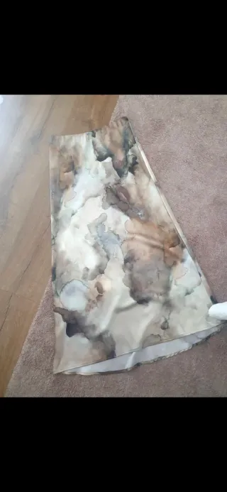 Falda de Zara con un bonito estampado abstracto en tonos marrones y beige. Ideal para un look casual o elegante. - Diseño fluido. - Cintura elástica. -Talla S Nueva. Nunca usada.
