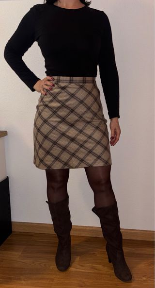 Falda Zara cuadros tiro alto Talla XS