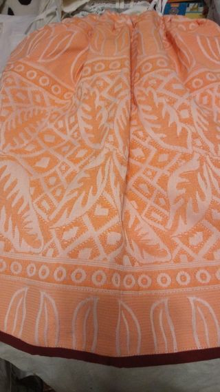 Falda de estilo baturra con un bonito estampado floral y mucho brillo, con brocado no metalico..Color rojo agranatado puesta en una unica ofrenda. Da tallaje amplio puesto que lleva cinta y gomas que se adaptan. Se regala cachirulo y faja a juego para bebe o niño pequeño. No contesto regateos por estar ya muy bien de precio. Se envia.