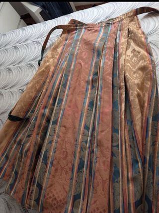 Falda de baturra con un diseño elegante y llamativo. - Estampado de flores y líneas verticales. - Tejido con brillo sutil.mirar mi perfil hay mas