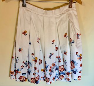 Falda con vuelo de The Closet London, color blanco con estampado de flores. Tejido con buena caída, muy favorecedora, ideal para primavera-verano, eventos informales o looks arreglados con sandalia o cuña. Usada en muy buen estado. Marca: The Closet London Color: Blanco con estampado floral Corte: Vuelo / evasé Estado: Muy bueno