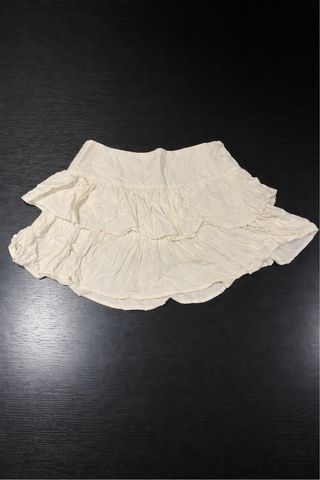 Falda blanca con detalle de volantes. - Cintura elástica fruncida. - Diseño de varias capas. - Tejido ligero y vaporoso.