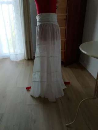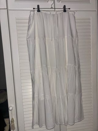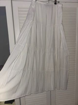 Falda larga de color blanco con un diseño de volantes. - Cintura elástica. - Tejido ligero.