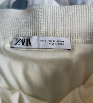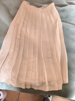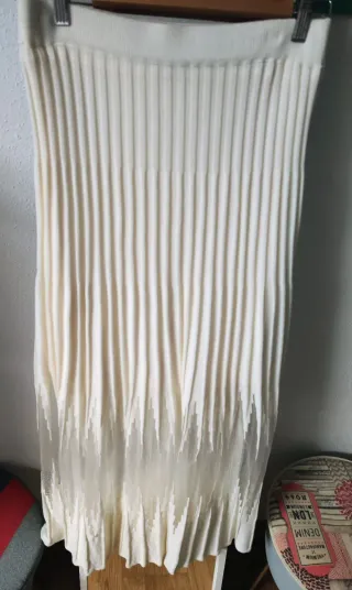 Falda de punto plisado de Zara. Diseño elegante y versátil. - Tejido de punto acanalado. - Detalle de transparencia en el bajo. - Cintura elástica. Es talla M pero como tiene cintura elástica vale para talla 42/44 - Sin estrenar.