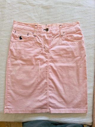 Preciosa Falda de calidad, color rosa clarito, tiene un tacto suave y es elástica por lo que da un poco de talla, largo por la rodilla. Es de la marca Custi Mikelo, Talla M. También la tengo en color blanco,(ver en mi perfil.)