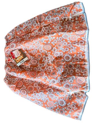 Original combinación de la marca Lovable de los años 70. Nueva con etiquetas, conserva su embalaje original. Tejido fino semitransparente con precioso estampado floral en tonos naranjas y blancos. Detalle de encaje en el bajo. Cintura elástica que conserva su firmeza perfectamente. Dos pequeñas aberturas decorativas en la parte frontal con lazos. Estado impecable, sin manchas, marcas ni roturas. Talla XS - Medidas aproximadas (en plano): Cintura estirada: 43 cm Cadera: 49 cm Largo: 39 cm *El tejido no es elástico 🫧 Los colores pueden variar ligeramente respecto a las fotos según el dispositivo o la luz.