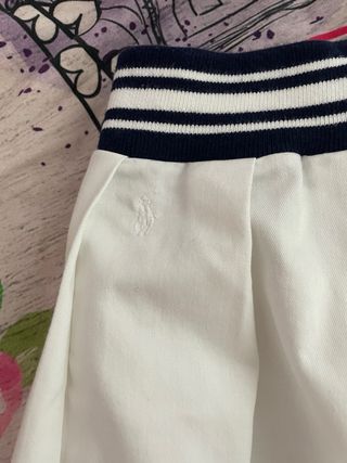 Falda blanca con un diseño plisado. - Cintura elástica. - Detalle de etiqueta en la parte delantera.