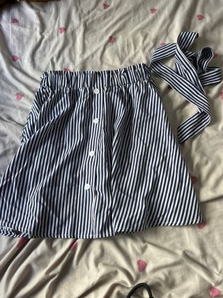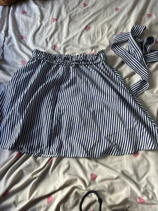Falda de rayas verticales con cinturilla elástica y botones delanteros. Incluye una lazada a juego. - Diseño de rayas azules y blancas. - Lazada de tela a juego. - 40cm comprimento.