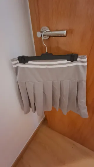 Falda plisada de estilo deportivo con un diseño moderno. - Cintura elástica con detalles de rayas blancas. - Pliegues definidos que le dan movimiento.