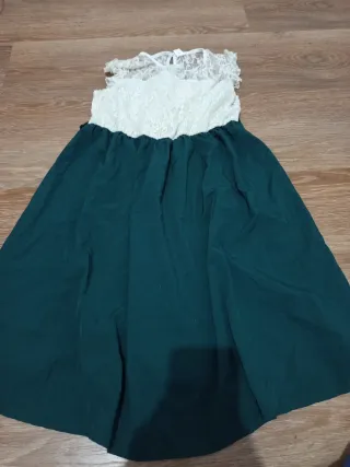 Vestido de dos tonos con un diseño elegante. Talla 11-12. Ideal para momentos especiales o ceremonias. - Parte superior de encaje blanco. - Falda larga de color verde oscuro. - Cintura elástica. Se ha utilizado dos veces.
