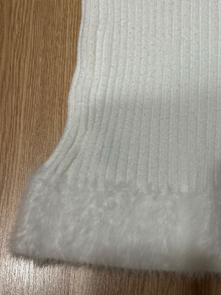 Minifalda de punto con un detalle de pelito en el bajo. - Tejido de punto acanalado. - Adorno de pelo sintético en el dobladillo. Queda ajustada y muy bien. Si necesitas medidas o cualquier cosa escribeme. ☺️