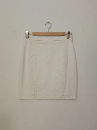 Preciosa falda blanca de Stradivarius, sin estrenar. Es una falda de talle alto con un diseño elegante y delicado. - Diseño con detalles calados. - Perfecta para cualquier ocasión.