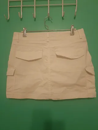 Minifalda de estilo cargo en color blanco. Talla M. En perfecto estado. - Bolsillos laterales y traseros. - Cierre de botón y cremallera. - Trabillas para cinturón.