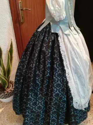 Alquiler Traje de fallera para niña, alquiler por día o fallas. Se alquila el traje con el cancán y zapatos talla 34 175€ un día, 225€ todas las fallas. Depósito de 250€ que se devuelven cuando me devuelvas el traje en las mismas condiciones que te lo llevaste. Es un traje precioso y super llamativo, ideal para fallas y para la.ofrenda - Diseño con falda en tonos azules y blancos. - Adornado con detalles plateados y florales.