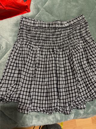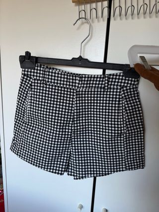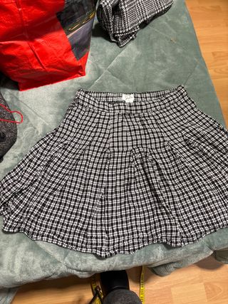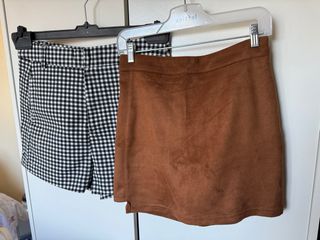 Conjunto de falda y short. - Falda de ante color marrón, marca shein y talla xs - Short de cuadros blanco y negro, marca stradivarius, talla S/36