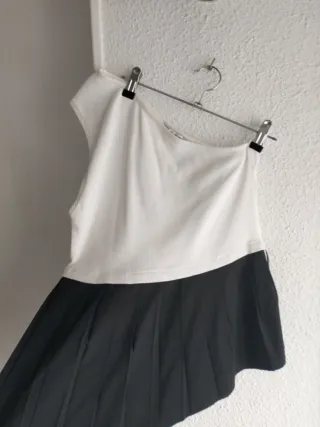 Top asimétrico de ZARA con un diseño moderno. - Tejido texturizado en la parte superior. - Falda plisada en contraste.