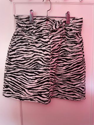Falda corta de Zara con estampado cebra en blanco y negro. Talla M. Está casi nueva, usada solo una o dos veces. Tejido tipo vaquero, cómoda y fácil de combinar.