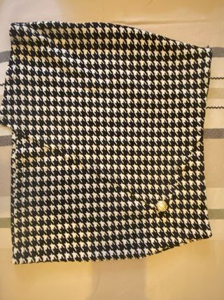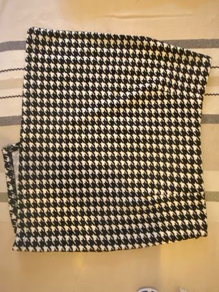 Falda de cuadros en blanco y negro, con un diseño moderno y elegante. Está en perfecto estado y ha tenido poco uso. - Estampado de pata de gallo. - Detalle de lazo. - Corte asimétrico.