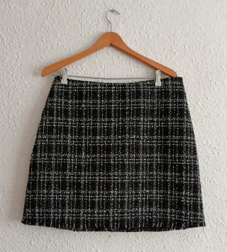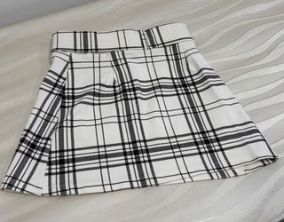 Minifalda de Zara con estampado de cuadros. En perfecto estado. - Diseño de cuadros blancos y negros. - Largo 37 cm - Corte acampanado.
